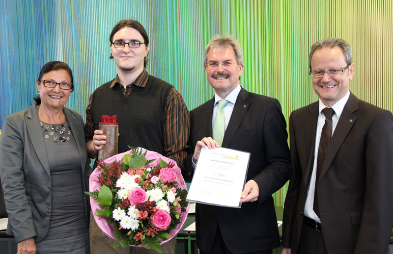 And the winner is Peter Promintzer! Der Absolvent der Gesundheits- und Krankenpflegeschule (GuKPS) Baden wurde im Festsaal der NÖ Landeskliniken-Holding zum Sieger des „NÖ Pflege-Award 2013“ gekürt. Platz zwei belegte Isabella Einfalt, Absolventin der GuKPS Zwettl, der dritte Platz ging an Theresa Wagner, Absolventin der GuKPS Amstetten.