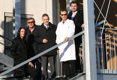 Beim Bau der Fluchtstiege: (v.l.) Pflegedirektorin Maria Aichinger, MSc, MAS, Projektleiter Dipl. KH-BW Ing. Franz Pöltl, LAbg. Hermann Hauer, Ärztl. Direktor Prim. Dr. Gerhard Koinig, MBA, und Kaufm. Direktor Dipl. KH-BW Johann Ungersböck