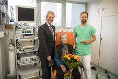 (v.l.) Landesrat Mag. Karl Wilfing, Patientin Maria Groissenberger aus Kilb und OA Dr. Bernhard Kirsch
