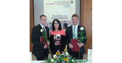 (v.l.) Pflegedirektorin DGKS Ingrid Czink gratulierte den OP- und Gipsassistenten Michael Anglmayer und David Engelmayr zur absolvierten Ausbildung.