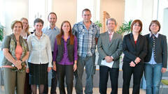 Mitglieder des Gmünder Palliativ-Teams: (v.l.) Diaetologin Maria Ableidinger, Krankenhausseelsorgerin Mag. Martina Stigler, DGKP Rudi Haller, Palliativ-Koordinatorin DGKS Alexandra Stacke, Dr. Ralf Österreicher, Ärztl. Standortleiter Prim. Dr. Michael Böhm, Dipl. Sozialarbeiterin Petra Bauer und DGKS Ingrid Strondl; Musikerin Claudia Höllrigl (2.v.l.)
