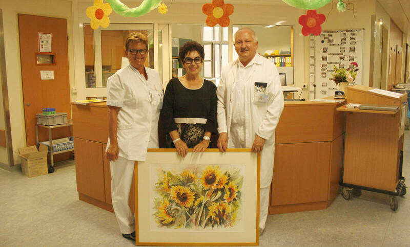 Landesklinikum Scheibbs: Als Dank und Anerkennung für die Betreuung auf der Chirurgie spendete Hobbykünstlerin Susanne Überbacher aus Wieselburg ein selbstgemaltes Gemälde „Sonnenblumen“.