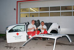 In vielen Übungseinheiten werden die Rettungssituationen immer wieder geprobt, da die Versorgungskette stets gewährleistet sein muss. Um diese Szenarien noch effizienter durchführen zu können, beschlossen Markus Hofmann und Christoph Neumeier, ein entsprechend adaptierbares Auto-Wrack zu bauen, mit dem man diverse Notfall-Maßnahmen nach Unfällen nachstellen und trainieren kann.