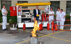 Alle Mitarbeiter des Landesklinikums Horn werden im Umgang mit Handfeuerlöschern geschult, um optimale Sicherheit für Patienten und Mitarbeiter zu gewährleisten.