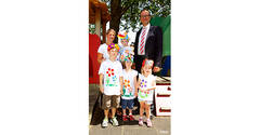 Nach einer kräftigen Stärkung mit Frankfurter Würstel und Pommes frites ging es gleich weiter mit lustigem Sackhüpfen, Dosenwerfen und dem Spiel Blumenmemory. Die Eltern freute es besonders ihre Kinder glücklich, in eigens für das Fest bedruckten T-Shirts, herumlaufen zu sehen. Als abschließende Belohnung bekamen die Kinder noch ein leckeres Eis.