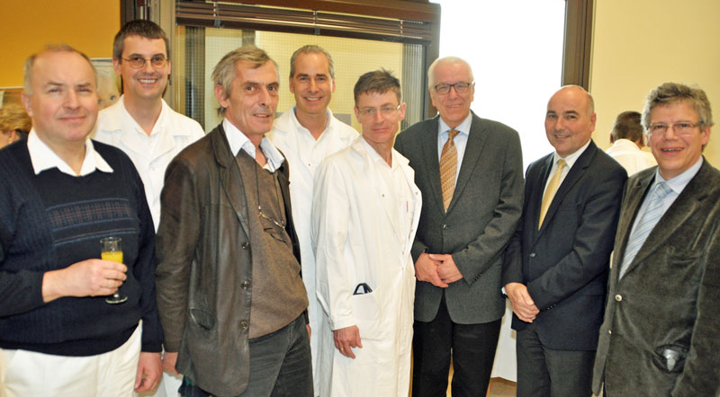 Prim. Univ.-Prof. Dr. Paul Riss (3.v.r.) wurde von zahlreichen Primarärzten in den Ruhestand verabschiedet (v.l.) Prim. Priv.-Doz. DDr. Hermann Brustmann, Prim. Univ.-Prof. Dr. Andreas Chemelli, Prim. Dr. Rainer Fliedl, Prim. Univ.-Prof. DDr. Thomas Klestil, Prim. Univ.-Doz. Dr. Franz Xaver Roithinger sowie Prim. Univ.-Doz. Dr. Johann Pidlich, Ärztlicher Direktor und Prim. Dr. Burghard Plainer, Stv. Ärztlicher Direktor