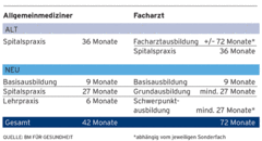 - Für den Allgemeinmediziner sind weitere 27 Monate Ausbildung in mehreren Spitalsabteilungen vorgesehen – ähnlich der bisherigen Praxis. Was danach kommt, ist neu: die Mitarbeit in einer Lehrpraxis über zumindest sechs Monate.