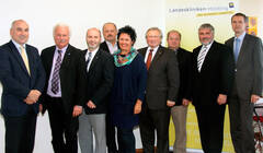 (v.l.) Prim. Univ.-Doz. Dr. Johann Pidlich, Bgm. KR Kurt Staska, LAbg. Bgm. Josef Balber, Bgm. Walter Jeitler, Margarete Sitz, MSc, Bgm. KR Herbert Osterbauer, BRO Josef Leitner, Medizinischer Geschäftsführer der NÖ Landeskliniken-Holding Dr. Robert Griessner und der Regionalmanager der Thermenregion DI Alfred Zens, MBA
