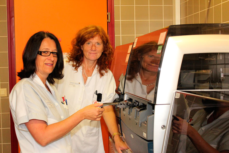 Die Leiterin des Instituts für Pathologie am Landesklinikum Mistelbach-Gänserndorf Prim. Dr. Christa Freibauer und MTF Michaela Leisser (v.r.) freuen sich über die gute Bewertung.