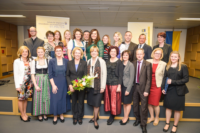 Unter den zahlreichen Ehrengästen befanden sich unter anderem Landesrätin Mag.a Barbara Schwarz, in Vertretung von Herrn Landeshauptmann Dr. Erwin Pröll, der kaufmännische Geschäftsführer der NÖ Landeskliniken Holding Dipl. KH-BW Helmut Krenn, Regionalmanagerin NÖ Mitte Hon. Prof. (FH) Christa Stelzmüller, MAS, die den Absolventinnen und Absolventen zu ihren Dekreten mit lobenden Worten gratulierten und ihnen für die Zukunft alles Gute wünschten. Die Direktorin der Schule für allgemeine Gesundheits- und Krankenpflege, Marianne Tanzer, MA, und das gesamte Lehrerteam freuten sich besonders über die hohe fachliche und soziale Kompetenz der Absolventinnen und Absolventen.