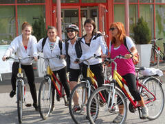 (v.l.) Arnelina Mrkaljevic, Liridona Halilaj, Gabriele Zöchmann, MSc, Nina Schützhofer und Eva Andrsch-Raith, MSc hatten beim Radausflug viel Spaß.