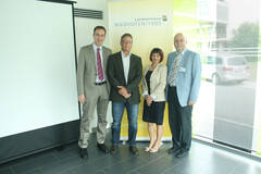 (v.l.) Mag. Martin Kaiser (Kaufmännischer Direktor), Prim. Dr. Stefan Leidl (Leiter der Abteilung für Allgemeinchirurgie), Doris Fahrnberger-Schober, MSc (Pflegedirektorin), Prim. Univ.-Doz. Mag. Dr. Klemens Eibenberger (Ärztlicher Direktor)