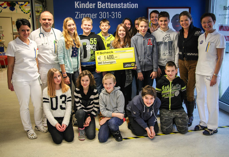 Fünf Tage lang verkauften sie selbstgemachte Waffeln, Punsch und Selbstgebasteltes. Der Betrag von € 1.400,-- wurde an den Förderverein TutGut gespendet. Dieser hilft schwerkranken Kindern im Waldviertel in Zusammenarbeit mit der Kinderabteilung am Landesklinikum Zwettl. Die Übergabe erfolgte auf der Kinderstation im Landesklinikum Zwettl.