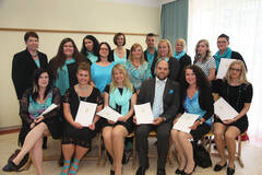 Klassenvorstand Elisabeth Berger gratulierte den Absolventinnen und Absolventen Sandra Brawenec (LK Neunkirchen), Andrea Brunner (LK Hochegg), Elisabeth Dorninger, Simon Feierfeil, Elfriede Friedrich, Petra Fuhrmann (alle Wien), Marina Horvath, Melanie Posch, Karin Liemmert, Sigrid Pfeiffer, Alexandra Zemanek, Romeo Trifa, Birgit Schwarz, Ines Zaglitsch (alle LK Wiener Neustadt), Romina Rudolf sowie Barbara Haslinger (beide aus dem Landespflegeheim Wiener Neustadt) zur bestandenen Ausbildung.