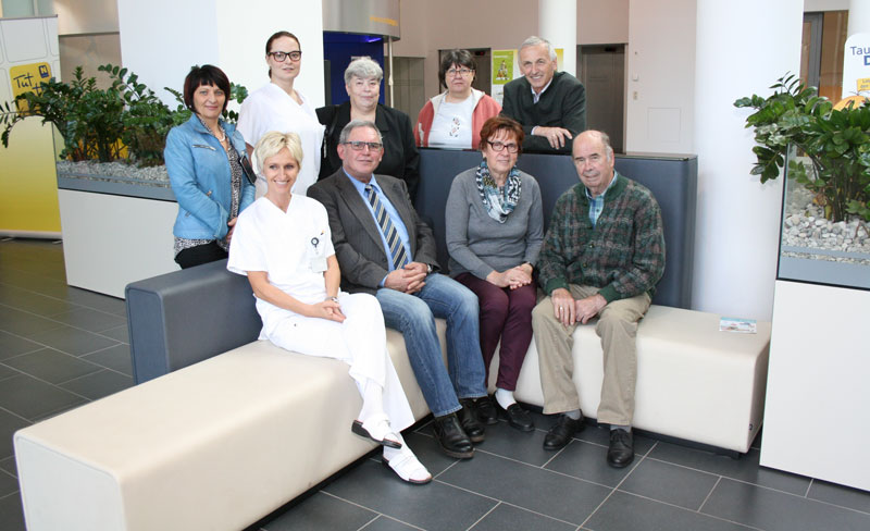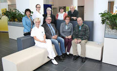 (v.l.) sitzend: DGKS Heike Matejka (Entlassungsmanagerin), Herbert Tazreiter (Selbsthilfegruppe MS), Rosa und Stefan Hager (SHG Morbus Parkinson); stehend: Doris Fahrnberger-Schober, MSc (Pflegedirektorin), DGKS Sonja Zwirner (Entlassungsmanagerin), Roswitha Mottl (SHG Demenz und Alzheimer), Renate Schoder (Herzverband), Josef Dorfmair (SHG Morbus Parkinson)