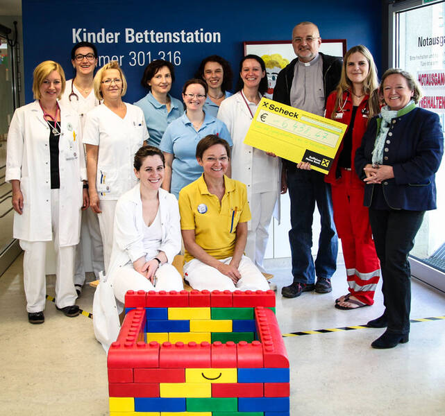 (v.l.) stehend: Erika Berger, Thomas Dietz, Claudia Bernold, Horst Ringl, Rene Frühwirth, Sabrina Aigner, Prim. Univ.-Doz. Dr. Manfred Weissinger, Stephanie Fürstenberg. Sitzend: Stefanie Decker, Annabell Kuba, Sophie Kuba, DGKS Eva Neuhauser, Sarah Frasel, Jitka und Tobias Frasel, Prim. Dr. Zdenek Jaros