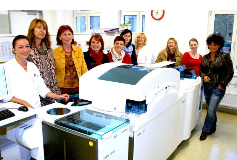 Das Laborteam im LK Korneuburg-Stockerau: (v.l.) Sonja Hurter, Christine Hagelkrüys, Karin Wondrak-Jandl, Cornelia Hadravek, Silvia Bermaier, Helga Leuthner, Margit Kreuzmann, Dagmar Holzer, Jennifer Ungar-Miglinci, Tina Pitter-Staringer