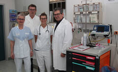 Praktikum im MZG: (v.l.) Stationsleitung Sylvia Köllner, der Medizinische Standortleiter des MZG Prim. Dr. Wolfgang Pichler, MAS mit Praktikantin Isabella Strini und Pflegedirektor DGKP Josef L. Strobl, akad. PD