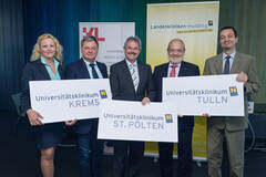 Der Rektor der KL, Univ.-Prof. Dr. Rudolf Mallinger, betont: „Für eine klinische Lehre und Forschung im Rahmen der medizinischen Ausbildung ist ein Klinik-Umfeld essentiell. Wir sind daher sehr glücklich, dass sich die Zusammenarbeit mit der NÖ Landeskliniken Holding von der ersten Planungsphase an konstruktiv und zielgerichtet gestaltet und die KL nun um die drei Kliniken als neue Universitätsstandorte gewachsen ist“, unterstreicht der Mediziner. „Damit können wir die Qualität der Ausbildung und Forschung nachhaltig sichern und sukzessive ausbauen sowie die Potenziale der vier Universitätsstandorte optimal nutzen. Wir freuen uns auf die weitere erfolgreiche Zusammenarbeit mit den neuen Universitätskliniken.“