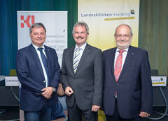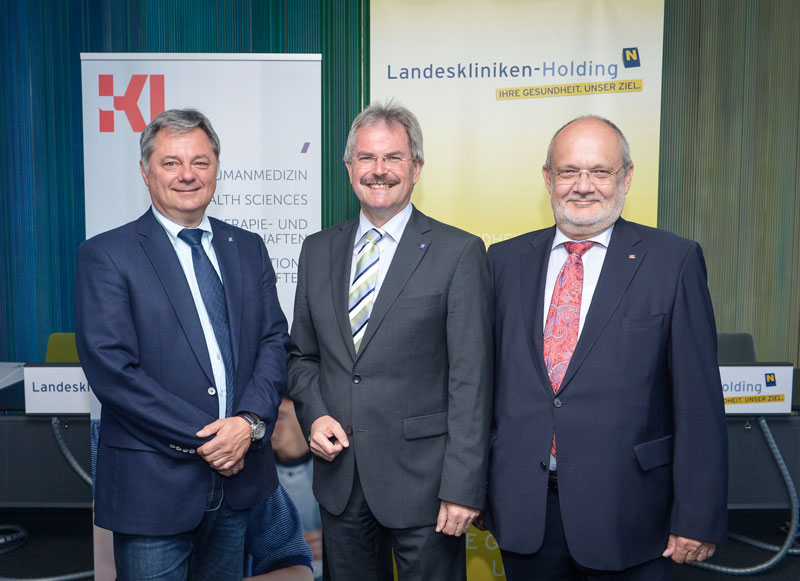 (v.l.) Dr. Markus Klamminger (Stv. Med. Geschäftsführer & Abteilungsleiter Medizinische und Pflegerische Betriebsunterstützung), Landesrat Mag. Karl Wilfing in Vertretung von Landeshauptmann Dr. Erwin Pröll und Prof. Dr. Rudolf Mallinger (Rektor der KLPU)