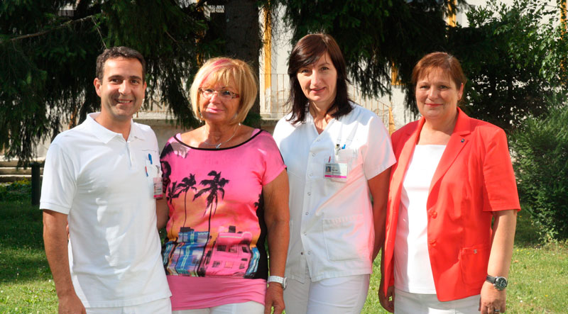 (v.l.) Bereichsleiter Hubert Waldhuber, DGKS Margit Flammer, Bereichsleiterin Karin Perner und Pflegedirektorin Dr. Evelyn Fürtinger, MAS