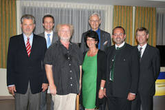 1.Reihe v. l.: Prim. Dr. Gottfried Gamperl, Kabarettist I.Stangl, Pflegedirektorin DGKS Bettina Riedmayer, Ärztlicher Direktor Prim. Dr. Lukas Koppensteiner, Bezirkshauptmann Dr. Peter Suchanek 2.Reihe v. l.: RM Dipl. Ing. Jürgen Tiefenbacher, Kaufm. Dir. KH-BW Wolfgang Palatinus
