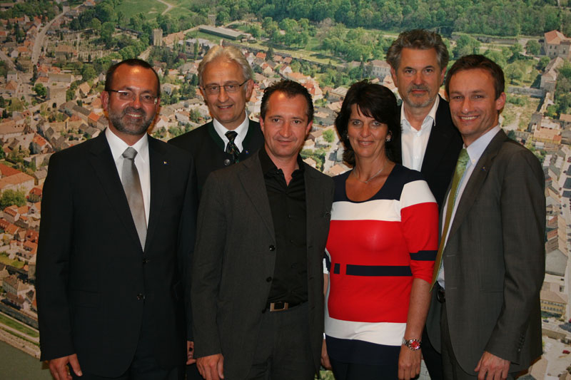 (v.l.) Ärztlicher Direktor Prim. Dr. Lukas Koppensteiner, Kaufm. Dir. KH-BW Wolfgang Palatinus, Autor und Schauspieler Nicolaus Hagg, Pflegedirektorin DGKS Bettina Riedmayer, Prim. Dr. Gottfried Gamperl, RM Dipl. Ing. Jürgen Tiefenbacher,