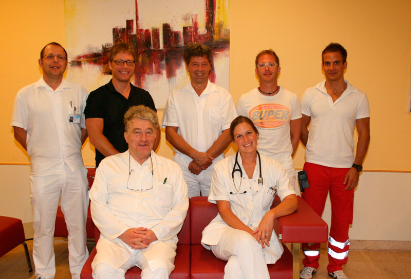 (v.l.) vorne: Prof. Dr. Heiner Welter, Ass. Dr. Kathrin Krammer, hinten: OA Dr. Christian Angerer, Prim. Dr. Stefan Leidl, OA Dr. Eduard Sporer, OA Dr. Markus Kerninger, Ass. Dr. Rainer Hinterleithner