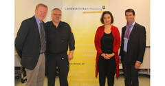 (v.l.) Ing. Robert Fahrnberger, technischer Sicherheitsbeauftragter des Landes Niederösterreich, OBI Robert Fuchs, Kommandant der Betriebsfeuerwehr im Landesklinikum Wiener Neustadt, Ing. Sabine Moldaschl, Abteilung Bau und Facility Management von der NÖ Landeskliniken-Holding und Mag. Andreas Gamlich, Kaufmännischer Direktor im Landesklinikum Wiener Neustadt