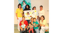 (v.l.) Bereichsleiterin DKKS Evelyne Peinsipp, Beate Huber mit Sohn Pascal, DKKS Heidemarie Riegler, die Kinder Laura und Elias mit Mutter Fernanda, DKKS Michaela Jungmann, Maria Thurner und Psychologin Mag. Barbara Polacek