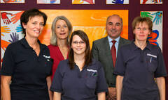 Bei der gemeinsamen Inbetriebnahme der neuen Geräte: Der ärztliche Direktor des Landesklinikums Baden-Mödling Prim. Univ.-Doz. Dr. Johann Pidlich, Prim. Dr. Karin Köhrer, MSc, MBA, BMA Margit Leitner, BMA Patricia Schwedenwein und BMA Martina Putz