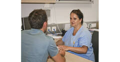 Oberärztin Dr. Mathilde Kutilek bei einem Patientengespräch in der Hepatitis-Ambulanz am Universitätsklinikum St. Pölten