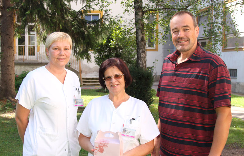 (v.l.) Bereichsleitung Unfallabteilung DGKS Claudia Baumgartner, Frau Wilhemine Wach und Bereichsleiter Anästhesie, Notfall- und Allgemeine Intensivmedizin DGKP Robert Meixner.