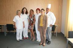 (v.l.) DGKS Bernadette Friesenegger, Diaetologin Bettina Schuller, Gabriela Wachter, Birgit Huber (Stv. Küchenleiterin), Mag. Antonia Krammer, Küchenleiter Johann Aichberger