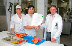 Mit den unterschiedlichsten Diätkostformen ist ein Koch in den Landeskliniken alltäglich konfrontiert. Deswegen ist es unerlässlich, neues Wissen in diesem wichtigen und sensiblen Bereich zu erlangen und entsprechend einzusetzen. Das setzte sich auch Thomas Grötzl zum Ziel. Er absolvierte den Lehrgang zum diätetisch geschulten Koch vom 1. März bis 21. Juni 2012 und nahm nach erfolgreich bestandener Prüfung das Diplom mit gutem Erfolg entgegen. Thomas Grötzl wird seine erworbene Zusatzqualifikation in der Küche des LK Zwettl vorwiegend in der täglichen Zubereitung der Diätkostformen einfließen lassen. „Um ca. 313.000 Essensportionen pro Jahr in den unterschiedlichsten Diätformen in hoher Qualität zubereiten zu können, sind hoch qualifizierte und engagierte Mitarbeiter notwendig. Ich bin überzeugt, dass damit eine weitere Qualitätssteigerung der von unserem engagierten Küchenteam zubereiteten Speisen erfolgt“, meint Dipl. KH-BW Franz Waldecker, Kaufm. Standortleiter.