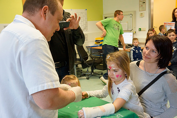 Man konnte auch selbst aktiv werden: mit einem Gesundheitstest in der „Gesundheitsstraße“, wo Momentaufnahmen der Stationen Blutdruck, Blutzucker, Body Mass Index und Cholesterin gemacht wurden und direkt in den persönlichen Gesund + Fit-Pass eingetragen wurden. Auch für die jüngsten Besucher gab es wieder zahlreiche Aktivitäten: Teddyklinik, Gipsen, Herzecho, … Auch die Clinic Clowns waren zu jede Menge Späße aufgelegt.