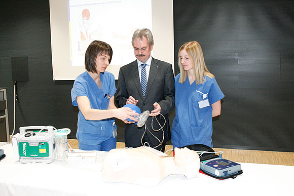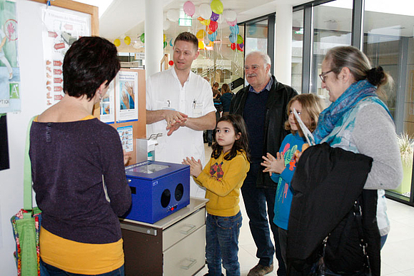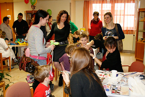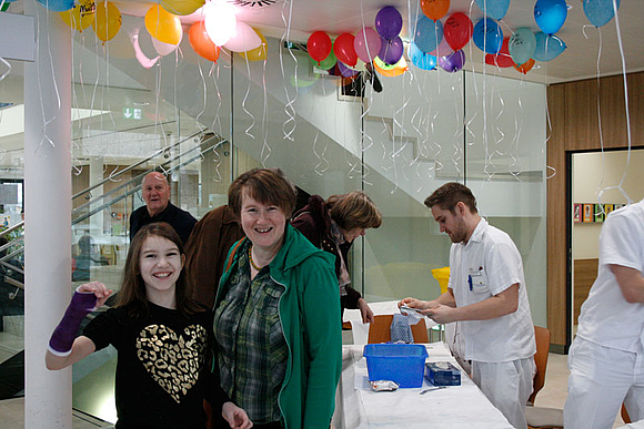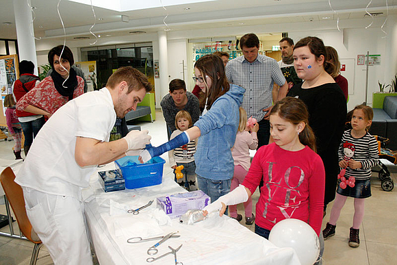 Man konnte auch selbst aktiv werden: mit einem Gesundheitstest in der „Gesundheitsstraße“, wo Momentaufnahmen der Stationen Blutdruck, Blutzucker, Body Mass Index und Cholesterin gemacht wurden oder bei den Reanimationsschulungen. Auch für die jüngsten Besucher gab es wieder zahlreiche Aktivitäten: Sehr beliebt war das freiwillige Anlegen von Gipsen, Kinderschminken und Luftballone modellieren. Kleine Andenken gab es in der „Teddy-Klinik“.