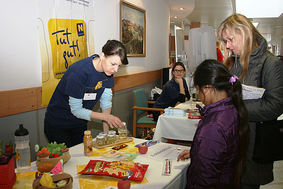 Beim Stand der Initiative »Tut gut!« wurden interessante Ernährungsexperimente angeboten sowie Informationen über die Begleitung durch ein gesundes und aktives Leben gegeben.