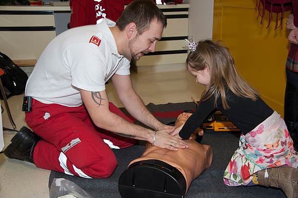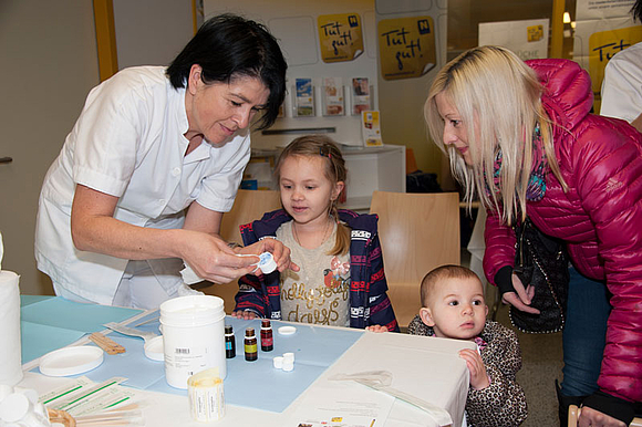 Man konnte auch selbst aktiv werden: mit einem Gesundheitstest in der „Gesundheitsstraße“, wo Momentaufnahmen der Stationen Blutdruck, Blutzucker, Body Mass Index und Cholesterin gemacht wurden und direkt in den persönlichen Gesund + Fit-Pass eingetragen wurden. Im Rahmen des Erlebnisgipsen konnten Kinder spielerische Erfahrungen mit dem Gipsen sammeln.