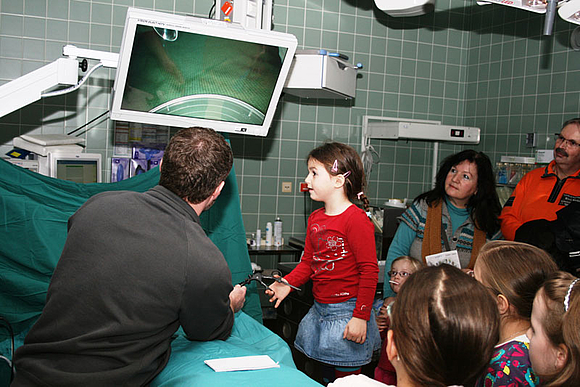Auch für die jüngsten Besucher gab es wieder zahlreiche Aktivitäten: Gemeinsam mit dem Küchenpersonal konnten die Kinder eine gesunde Jause zubereiten und im Anschluss daran auch verkosten. Im Akut OP konnten sie ihre Geschicklichkeit beim Hantieren mit einem Laparoskop unter Beweis stellen. Ein weiterer Auszug aus den umfangreichen Angeboten: Die Physikalische Therapie bot Gleichgewichtsübungen an, bei der Ergotherapie konnten Gegenstände ertastet werden und bei der „Aromapflege“ gab es ein „Duftspiel“. Bei allen Stationen konnten die Kinder in ihrem Kinderpass Stempel sammeln und am Schluss gegen eine Urkunde und ein kleines Geschenk als Erinnerung an den Tag der offenen Tür eintauschen.