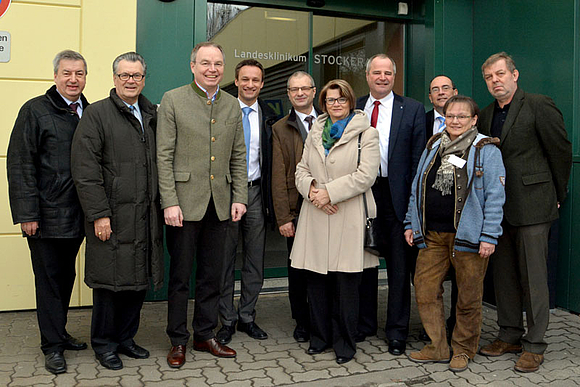 vlnr: Bürgermeister Helmut Laab, Stadtrat KommR. Peter Hopfeld, Landesrat Dr. Stephan Pernkopf, Regionalmanager DI Jürgen Tiefenbacher, kaufm. Direktor DKBW Anton Hörth, Bezirkshauptmann Dr. Waltraud Müllner-Toifl, LAbg. Ing. Hermann Haller, ärztlicher Direktor Dr. Rainer Ernstberger, MSc, MBA, interim. Direktorin GuKPS Ulrike Ruzicka, Prim. Doz. Dr. Burkhard Leeb