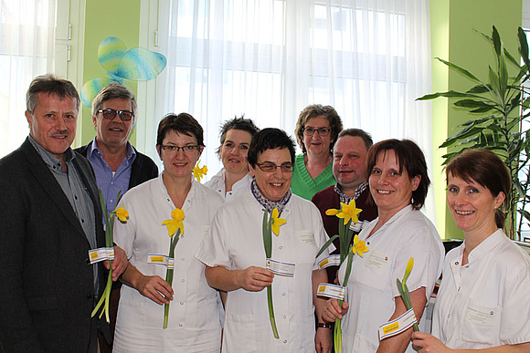 Landesklinikum Neunkirchen: (v.l.) Kaufm. Direktor Dipl. KH-BW Johann Ungersböck, stellvertretende Pflegedirektorin DGKS Elfriede Ratschiller, Abgeordnete zum NÖ Landtag Hermann Hauer, Bezirksobfrau Senioren Hermine Knöbel, Gesundheits- und Krankenpflegeschülerin Nicole Nagl, ÖAAB Teilbezirksobfrau und Hilfswerkvorsitzende Traude Lukas, DGKS Gabriele Maier, Hilfswerk DGKS Nicole Mitsch, MTF Maria Ponweiser, Zivildiener Manuel Pfeiller, Stadtrat Franz Berger